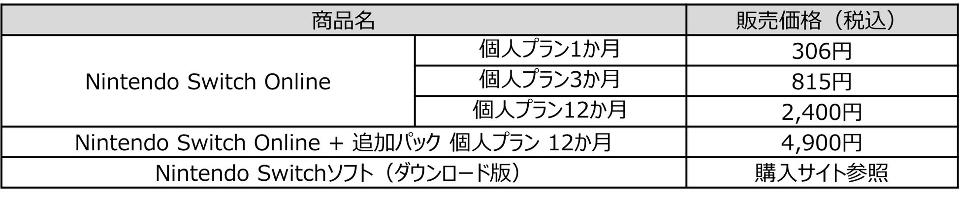 「Nintendo Switch Online」および「Nintendo Switchソフト(ダウンロード版)」の概要
