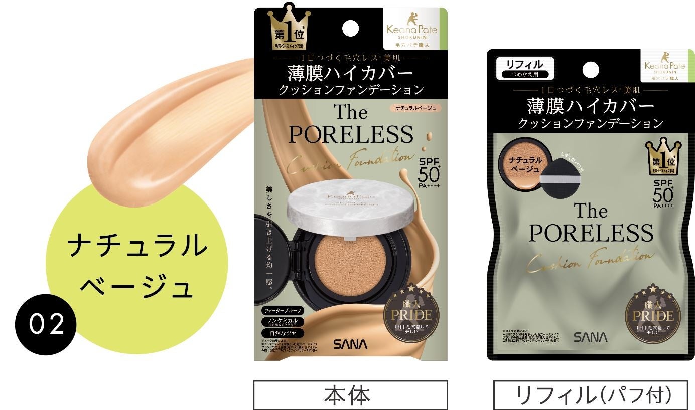 サナ 毛穴パテ職人 ポアレス クッションファンデーション 01・02