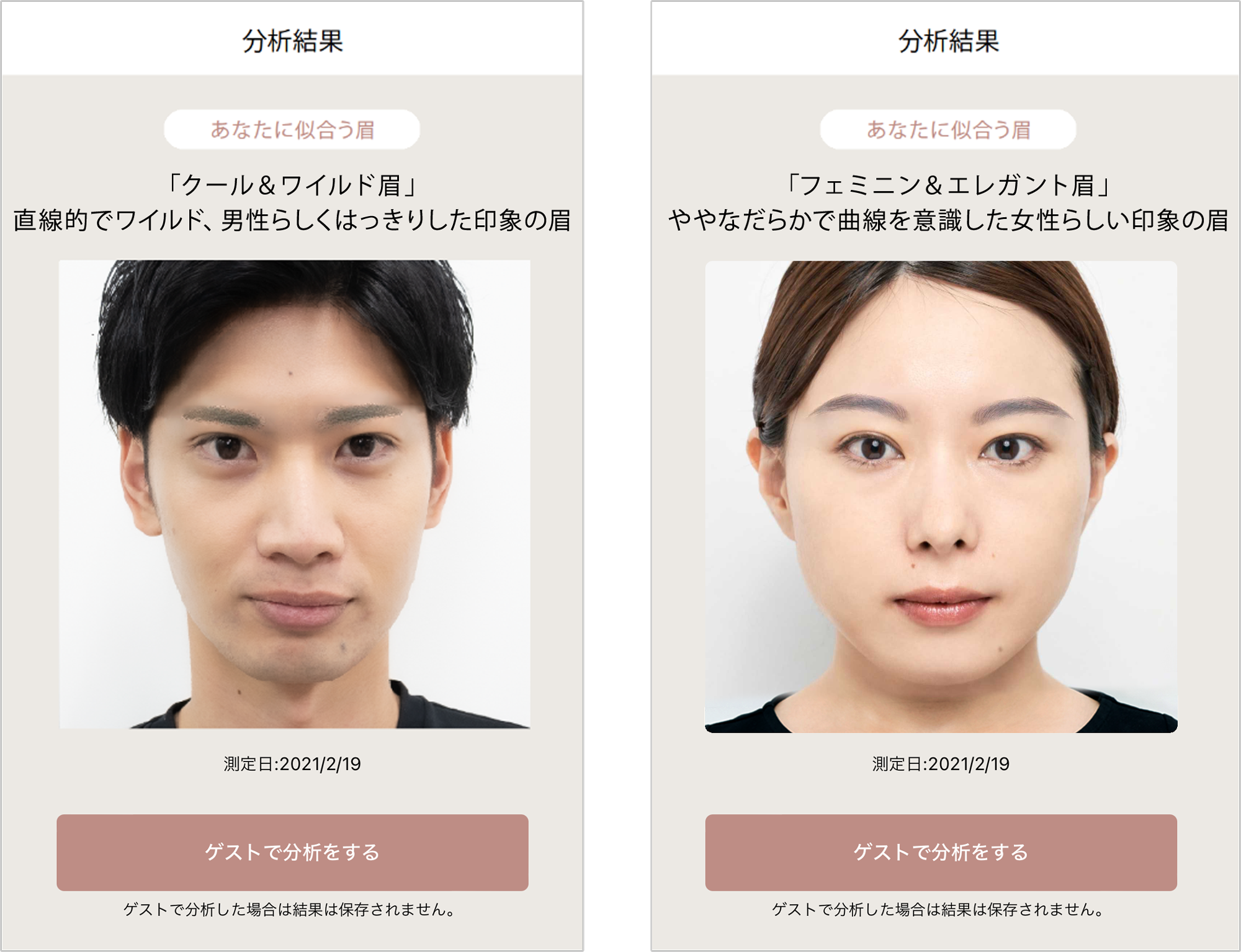 ●ご自身の顔写真に似合う眉を合成した画像を分析結果に表示することで、シミュレーションが可能