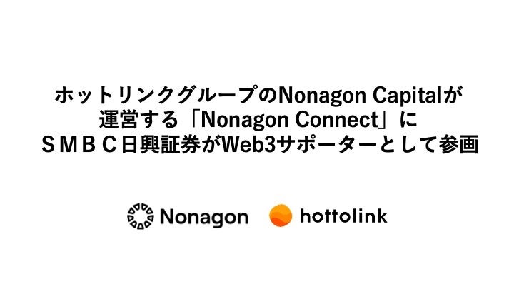 SNSマーケティング支援サービスを提供する株式会社ホットリンク(本社:東京都千代田区、証券コード:3680、代表取締役グループCEO:内山幸樹)は、当社グループの合同会社Nonagon Capital(本拠:米国サンフランシスコ・ベイエリア、ファウンディング・パートナー:岡本和士、以下Nonagon Capital)が提供する「Nonagon Connect」へ、SMBC日興証券株式会社(以下、SMBC日興証券)がWeb3サポーターとして参画することを発表いたします。