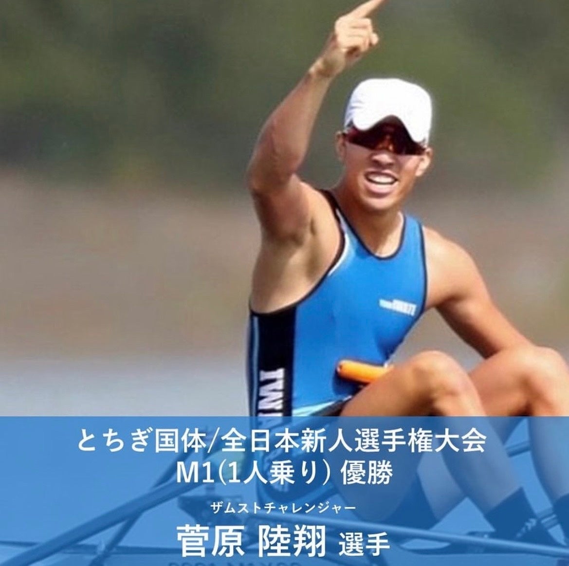 【ボート競技】菅原陸翔(5期):とちぎ国体、全日本新人選手権大会 M1(1人乗り) 優勝