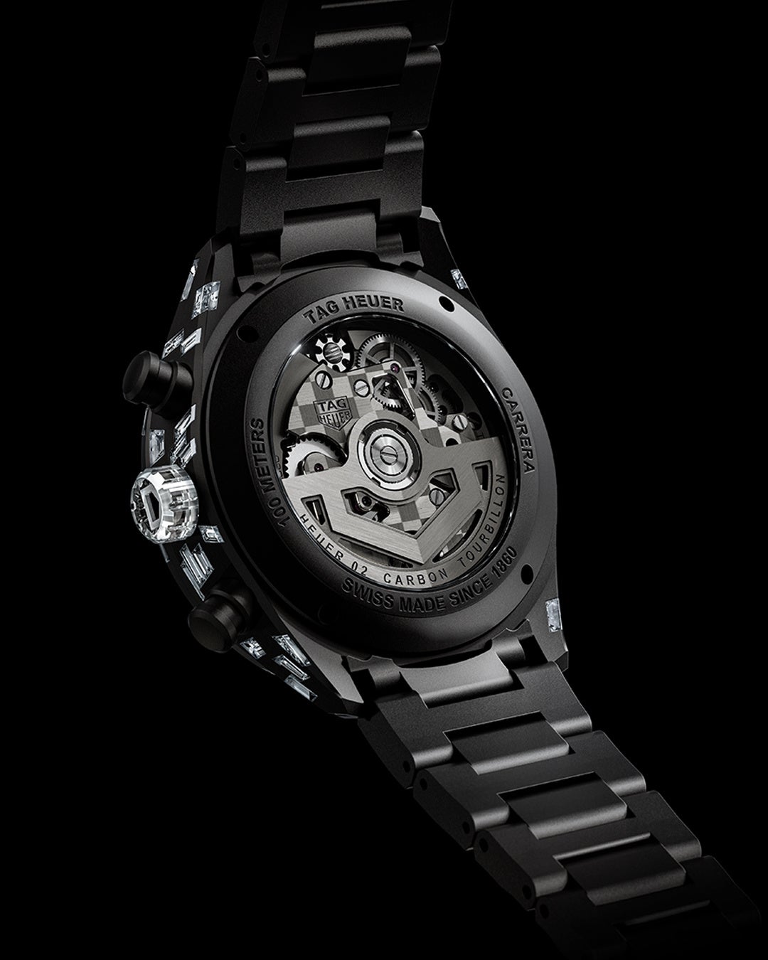 新しくなった本クロノグラフの目に見える部品のほとんどにはディアマン ダヴァンギャルドのダイヤモンドがあしらわれており、その重さは合計15.5カラット(合計124個)にもなります。使用されるラボグロウンダイヤモンドは、LusixやDiamazeなど驚異の最先端技術を専門とするタグ・ホイヤーのパートナーによって製造され、タグ・ホイヤー カレラ プラズマ ディアマン ダヴァンギャルドのために厳選されたものです。