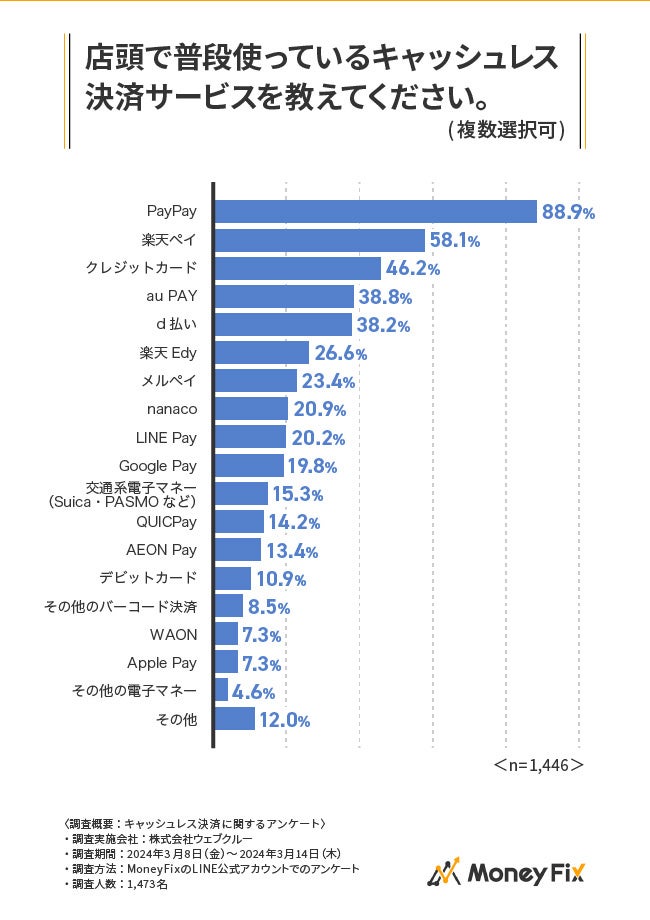 「MoneyFix」を運営する株式会社ウェブクルー(本社:東京都世田谷区、代表取締役社長:藤島義琢)は、「MoneyFix LINE公式アカウントの友だち」を対象に、「キャッシュレス決済に関するアンケート」を実施しました。
