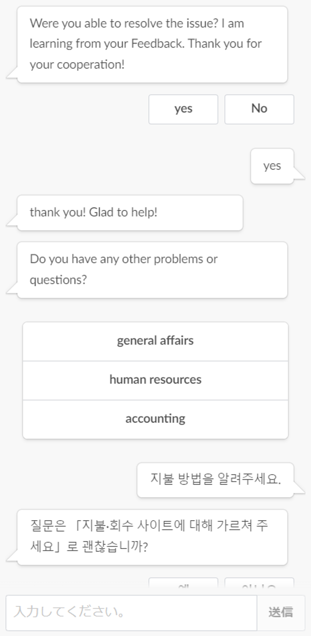 ボットとの会話の中で、自然に多言語で通じるようになり、大変画期的だと感じています。