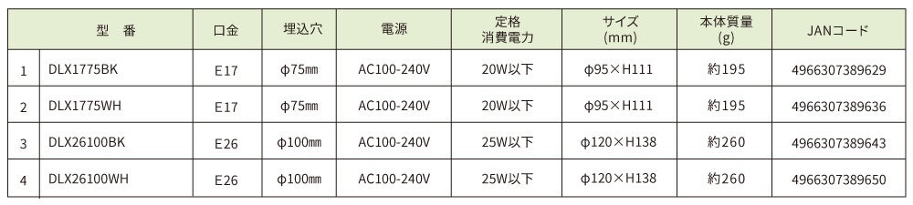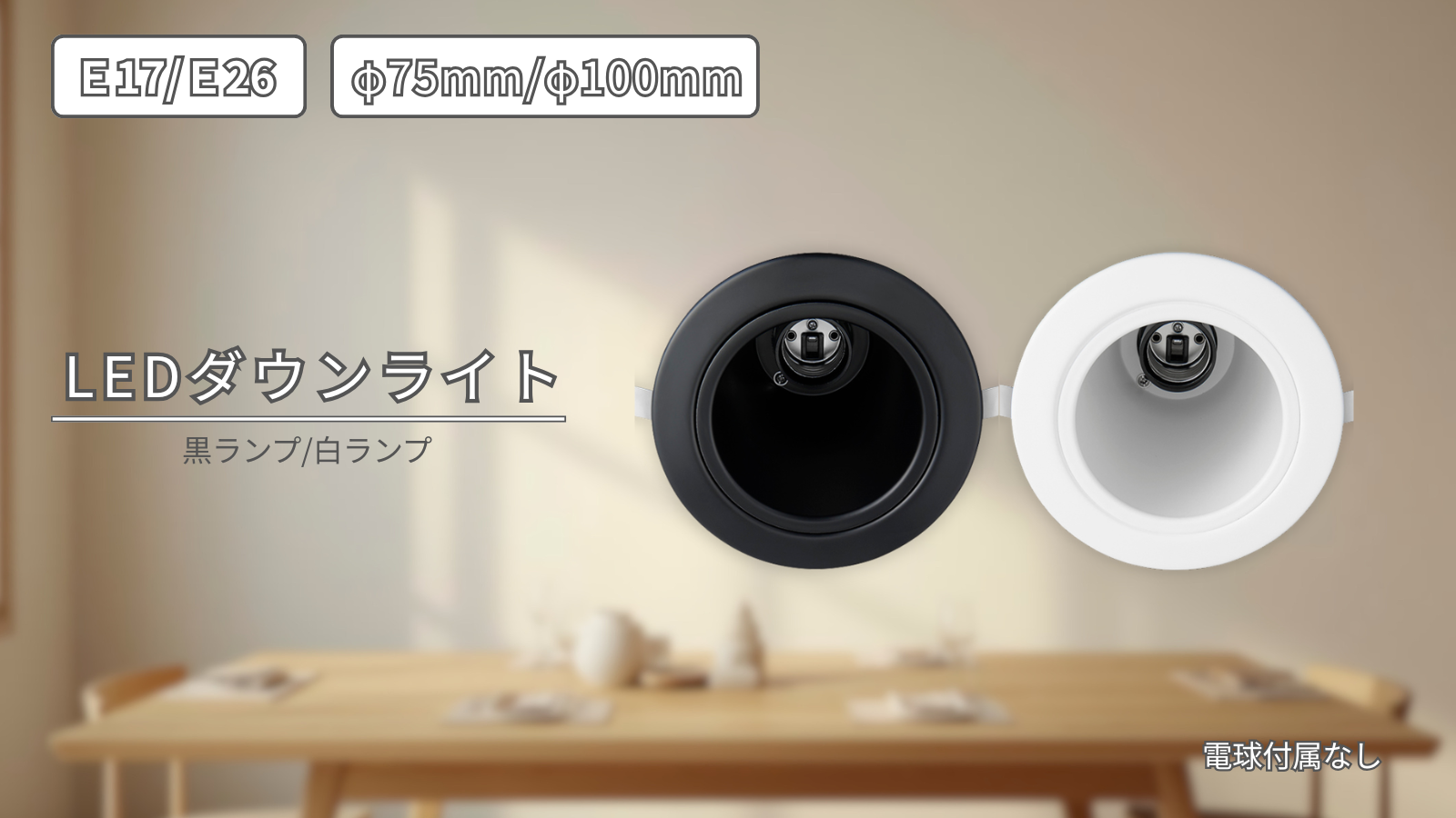 ダウンライト開口Φ75㎜ 黒/白ランプ E17/E26