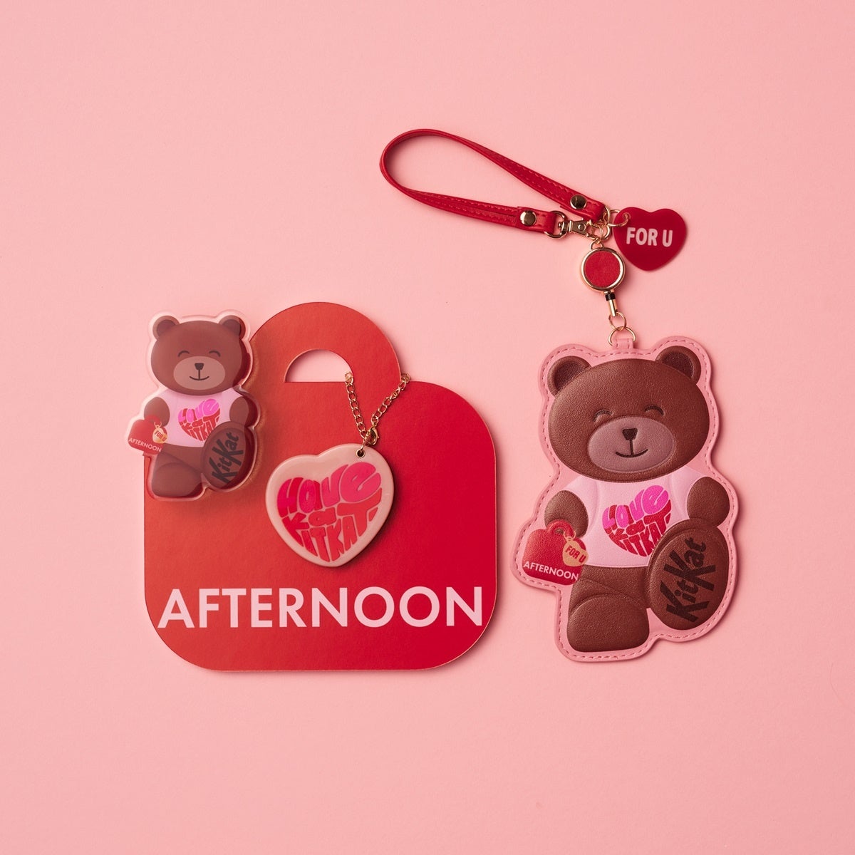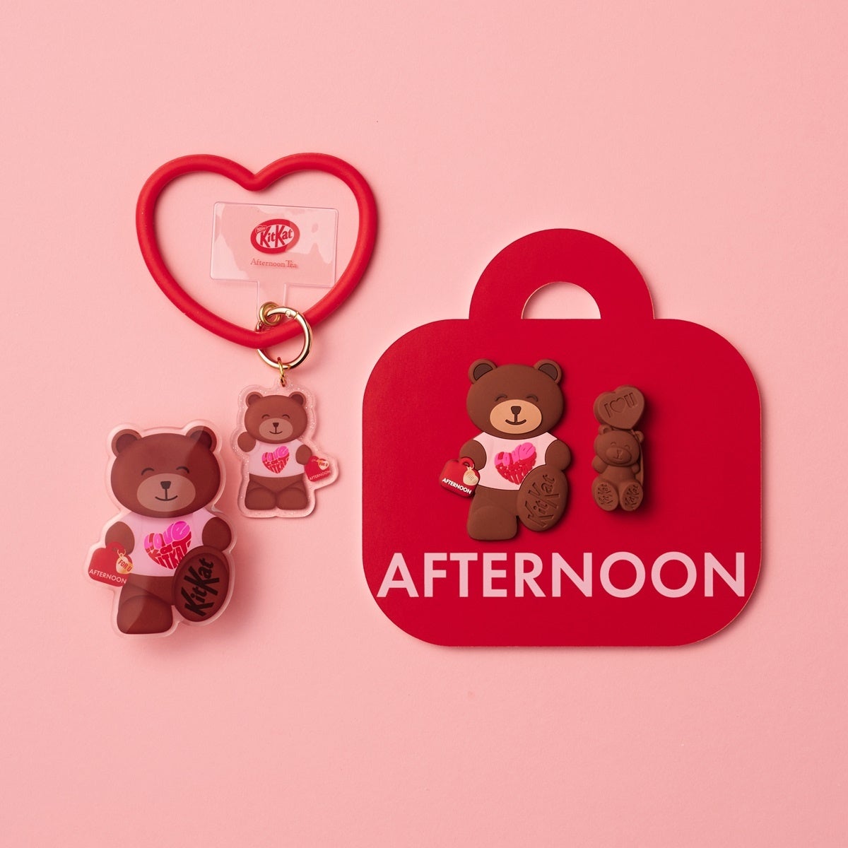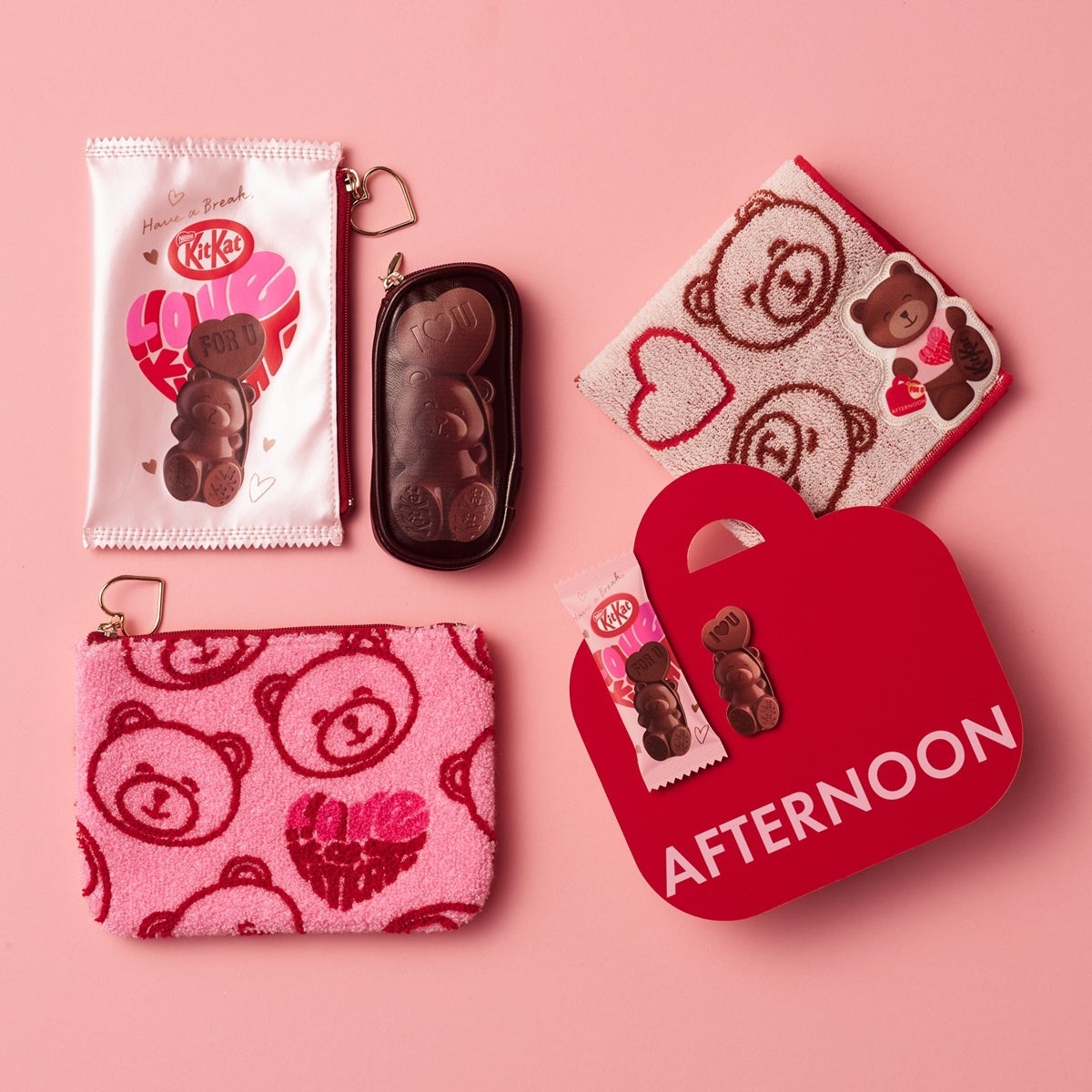 昨年も好評を博した本コラボレーション。今年は“「キットカット ハートフルベアー」と一緒におでかけしよう”をテーマに、ハンカチやポーチ、「ハートフルベアー」をダイカットで表現したリール付きパスケースなど、毎日持ち歩きたくなるアイテムがラインアップします。さらに、ショッパー入りのぬいぐるみやマグカップも登場し、お出かけやバレンタイン気分を一層華やかに彩ります。お気に入りのアイテムとともに、より特別なお出かけ時間をお楽しみください。