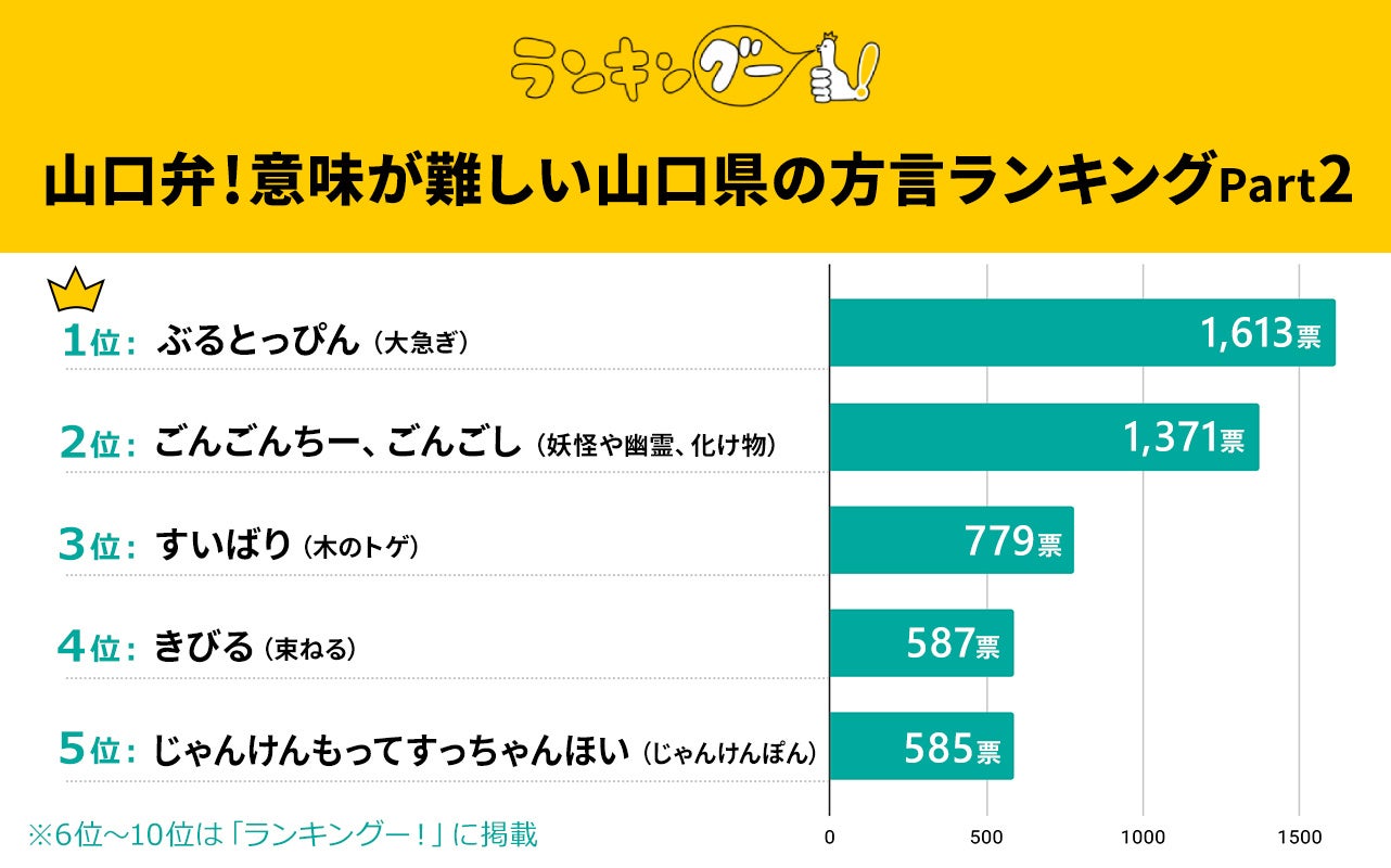 調査方法:株式会社CMサイトがインターネットリサーチした<山口弁!意味が難しい山口県の方言ランキングPart2>のアンケート結果を集計。