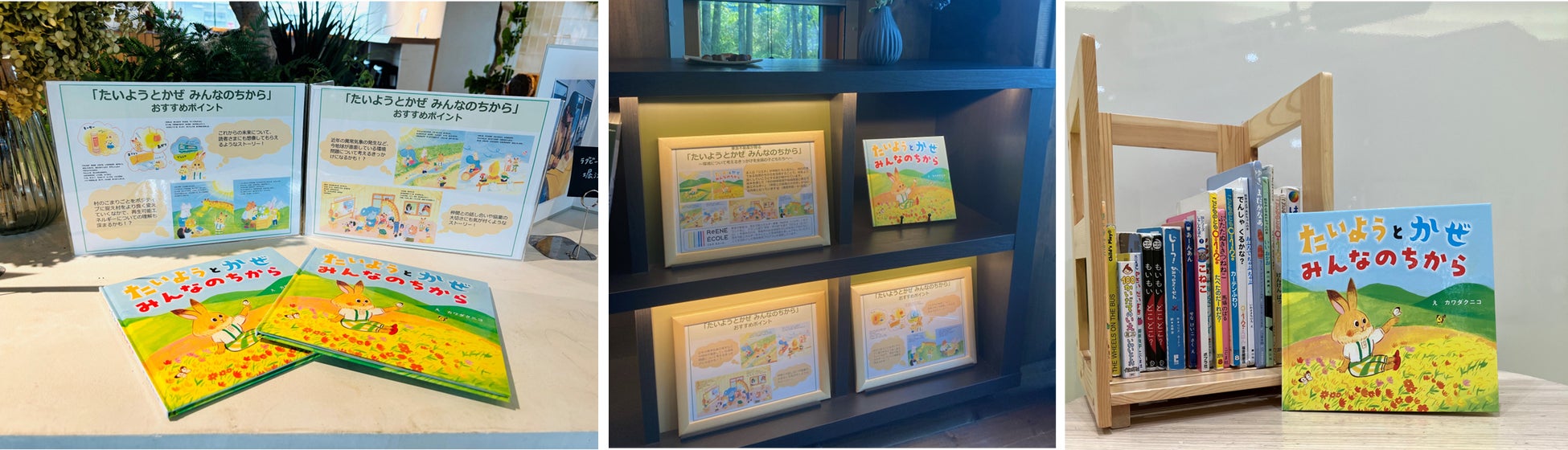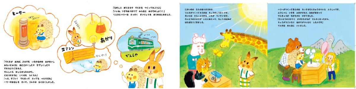 当社は太陽光発電や風力発電など再生可能エネルギー(以下、「再エネ」)事業を全国で113事業手掛けており、その発電規模は定格容量1,806MW(2024年8月末時点)と国内有数の規模を有しております。同時に発電所のある地域では発電所見学や再エネ発電の原理などを説明する出前授業を、地域共生取り組みの活動拠点として展開しているTENOHA施設などでは環境について学べるワークショップなど、全国各地で環境教育プログラム「 ReENE ÉCOLE(リエネエコール) 」を展開しています。これまで、こうしたイベントは小学生以上が主な対象でしたが、より若年層とその親世代にも、環境について考え、再エネの有用性などを知ってもらうきっかけを作るため、絵本を作成しました。