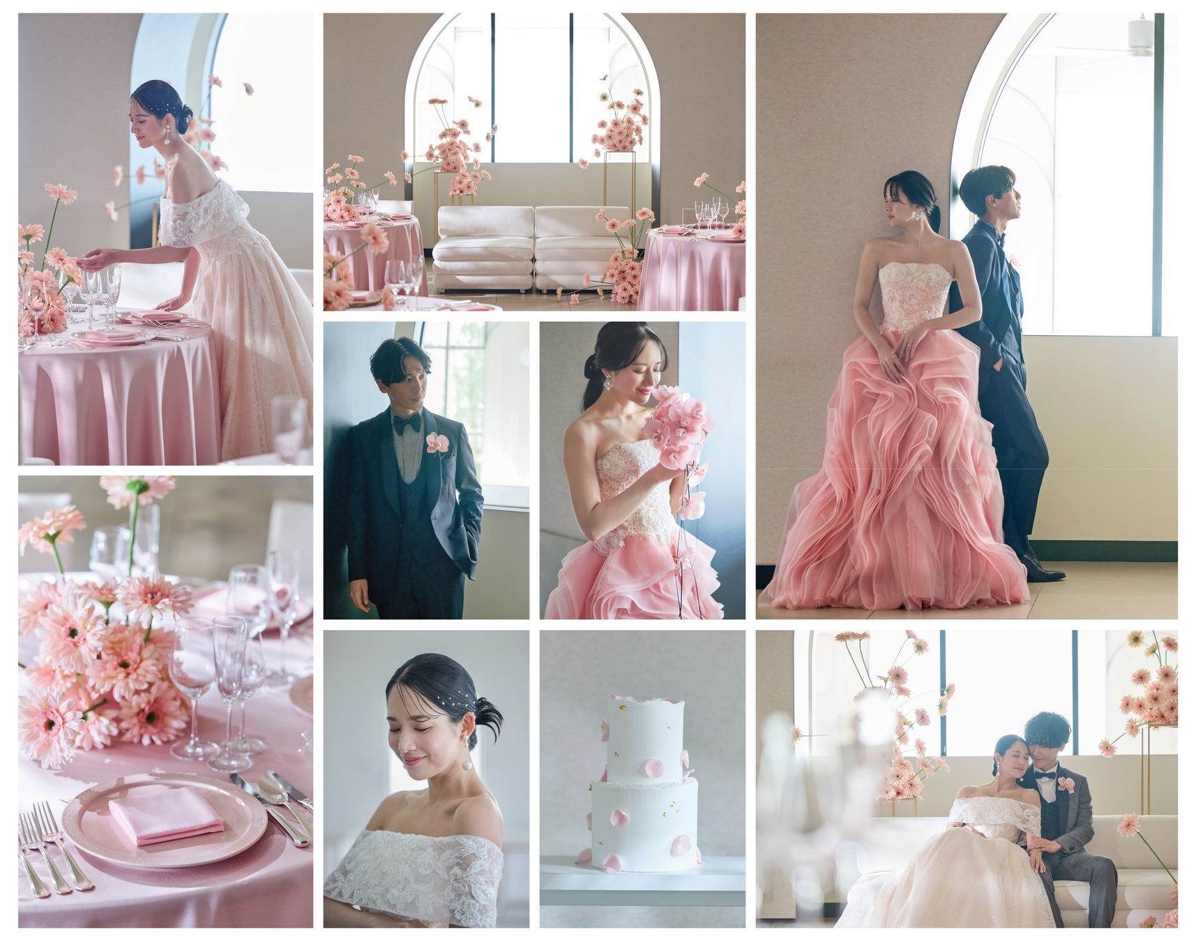 ウェディングで不動の人気を誇るピンクをテーマに、ラブリーさやキュートさを上品に表現し、大人の洗練された可愛さを演出するコーディネートです。