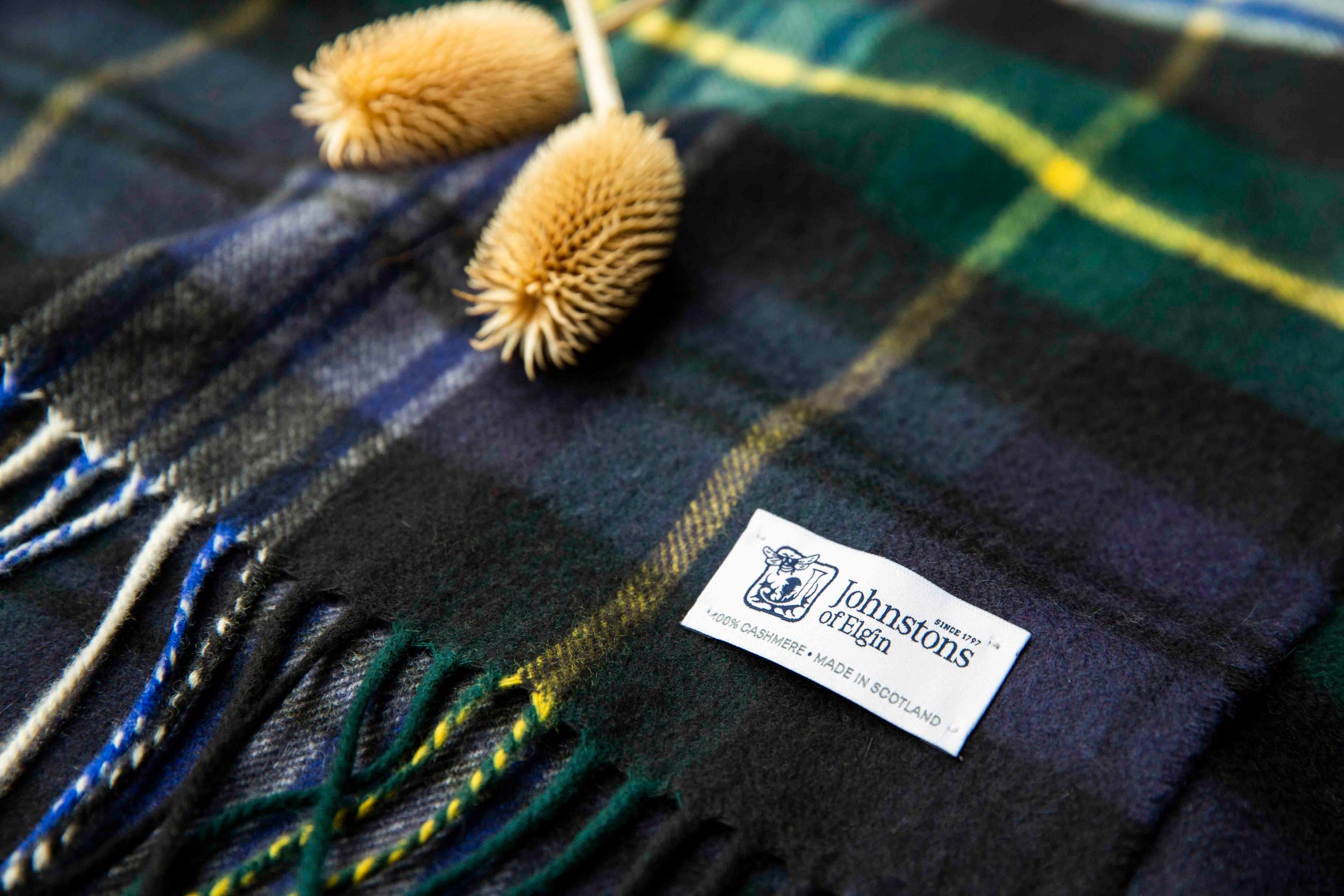 1797年、スコットランド北東に位置するエルガンで創業した老舗ブランド「ジョンストンズ オブ エルガン」。200年以上にわたってジョンストン家とハリソン家のファミリーが経営に携わり、カシミヤやビキューナ、メリノウール、ラムズウールなどの 高級素材を使った生地、スカーフ、ホームファーニシングなどを作り続けています。