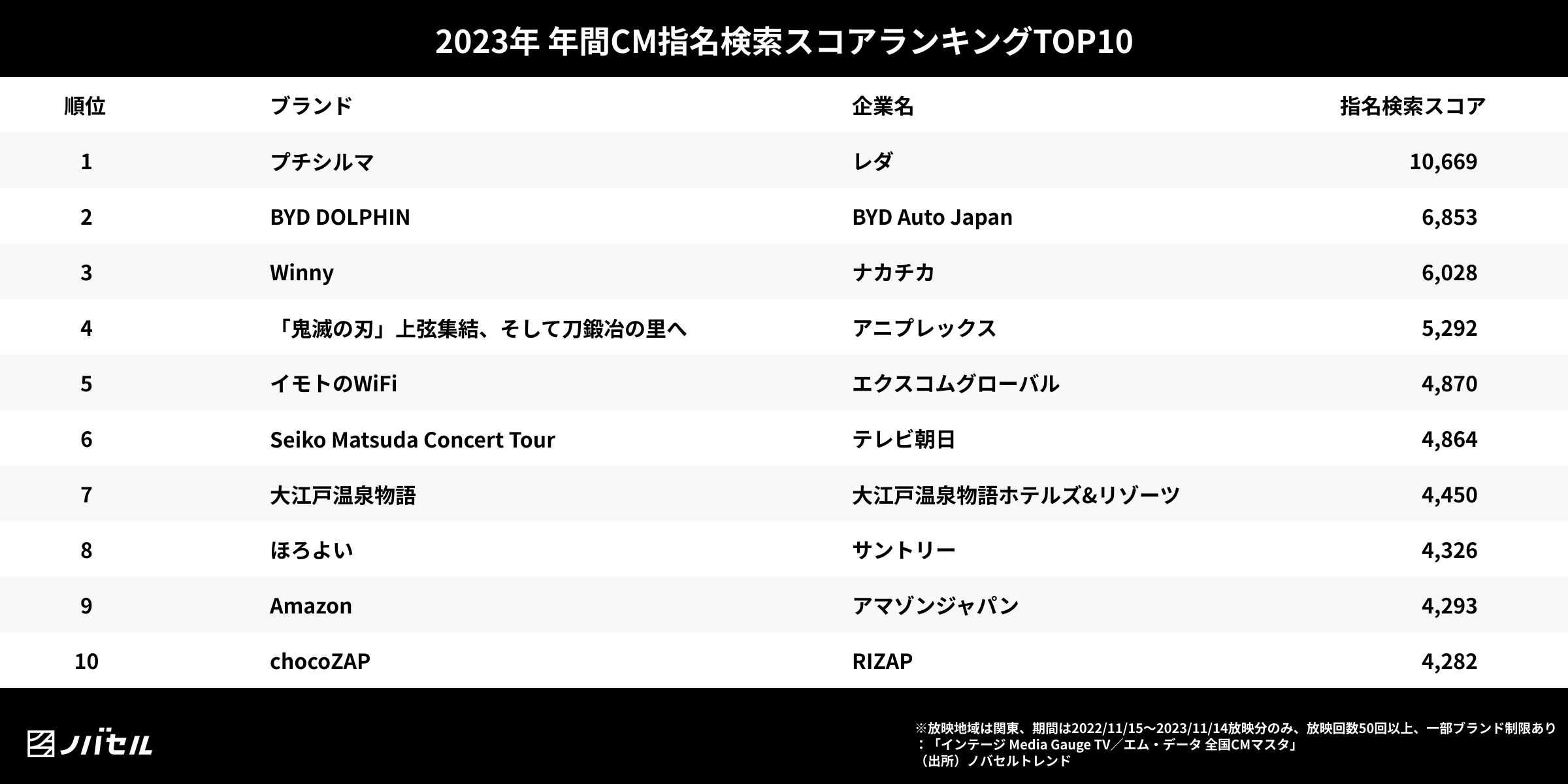 ノバセル発表、2023年に視聴者が検索したテレビCMランキング