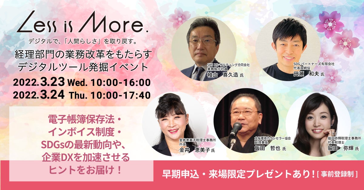BtoBビジネスを革新する信頼のリーディングカンパニーを目指す、株式会社インフォマート(本社:東京都港区 代表取締役社長:中島 健)は、3月23日(水)・24日(木)の2日間、経理の業務改革をもたらすデジタルツール発掘イベント「Less is More.」第9回を開催いたします。