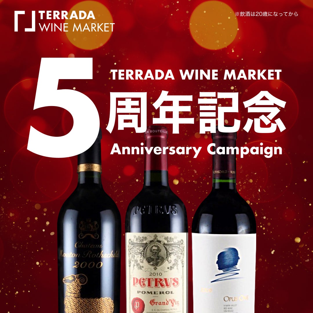 このたびのTERRADA WINE MARKET 5周年記念キャンペーンでは、当社のコレクションより厳選した55本から、お好みのワインを選んで応募いただけます。世界最高峰のボルドーワインと称される「シャトー・ペトリュス」を55万円で提供するほか、ワインの産地ごとに3つのコースを順次展開します。「アメリカコース」では、ハーラン・エステートやマヤなどのカルトワインを含む、一度は味わってみたい選りすぐりのワインを取りそろえます。「イタリアコース」では、伝統的なワインから歴史を変えたスーパータスカンまで個性豊かなイタリアワインを提供します。「フランスコース」では、5大シャトーをはじめ、ブルゴーニュやシャンパーニュなどフランスが誇る銘醸地のグラン・ヴァンを厳選しました。