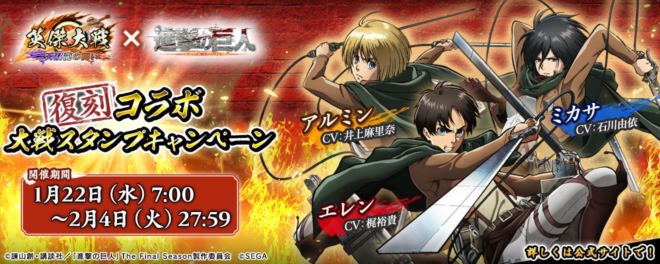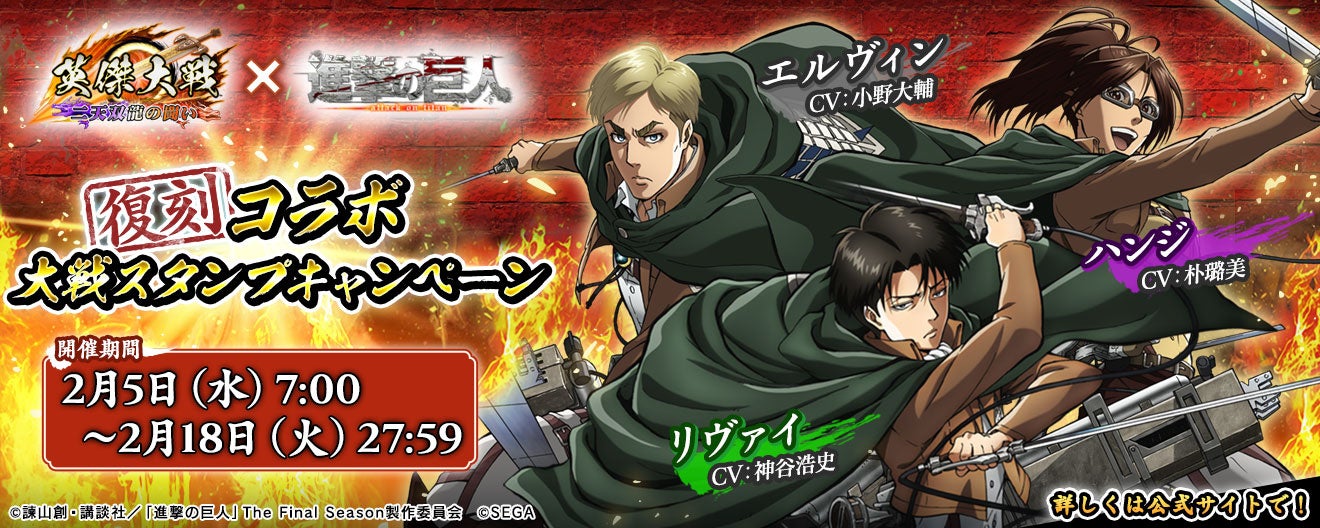 ■『英傑大戦』×TVアニメ『進撃の巨人』復刻コラボ大戦スタンプキャンペーン概要