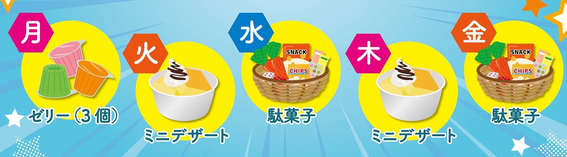 店内でご飲食いただいた小学生以下のお客さまを対象に、平日17時~22時限定で日替わりプレゼントを提供いたします。
