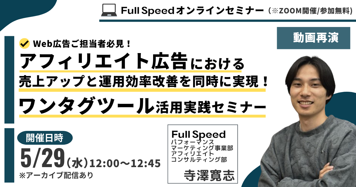 【5月29日(水)オンライン動画視聴セミナー】アフィリエイト広告における売上アップと運用効率改善を同時に実現!ワンタグツール活用実践セミナー