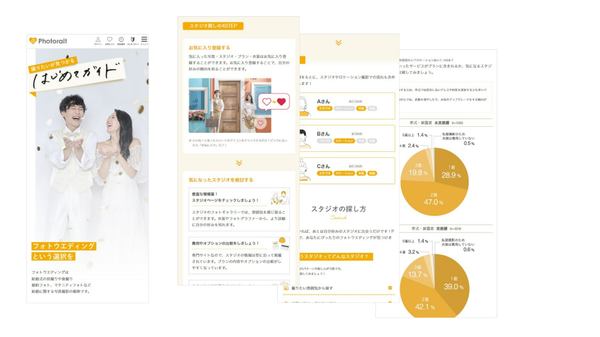 フォトウエディングの情報はPhotoraitやSNSに多く溢れています。一方で、基礎知識を得る機会は少なく、検討初期段階のユーザーにとっては押さえるべきポイントがわからない状況でもありました。