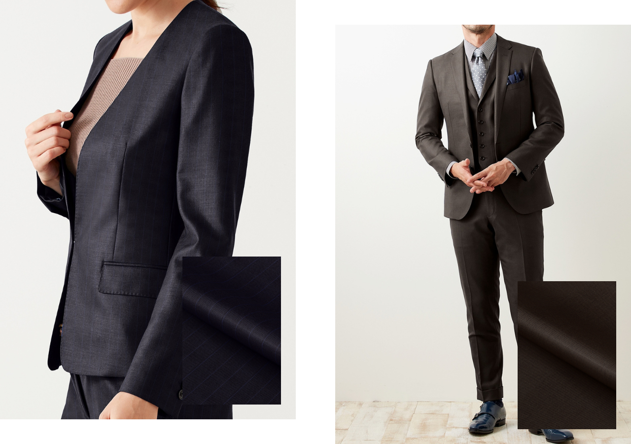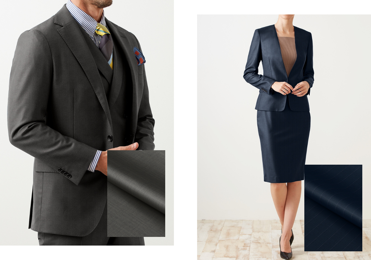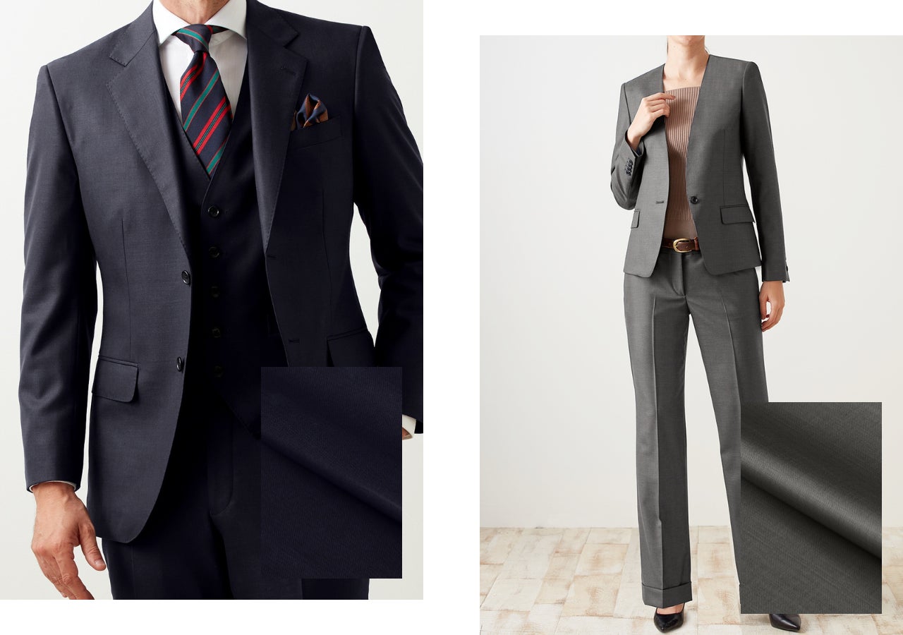 26年春モノ新作では、ネイビー、グレー、ブラックなどのビジネスで重宝するベーシックな色合いを中心に、ストライプ柄やチェック柄など柄物生地も多数入荷しました。ビジネスシーンはもちろんフォーマルシーンにもおすすめです。ぜひ一度、店頭で新作生地をお楽しみください。
