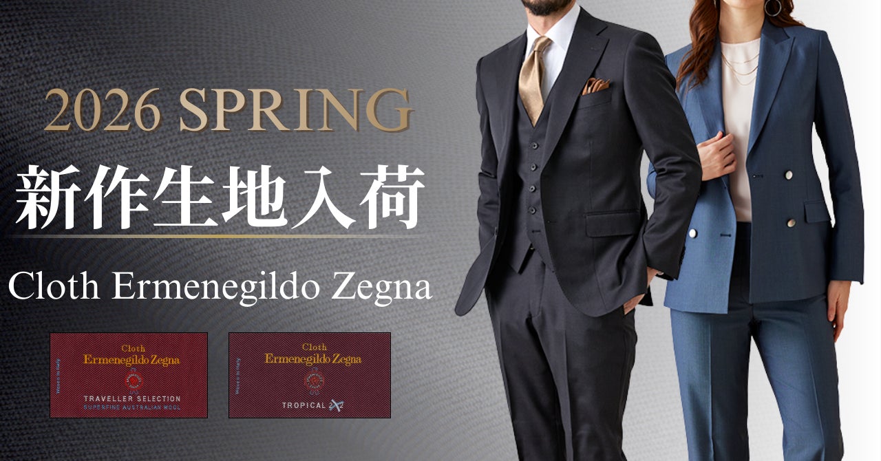 オーダースーツ専門店「グローバルスタイル」を運営するグローバルスタイル株式会社(東京証券取引所 スタンダード市場:7126、本社:大阪市中央区、代表取締役社長 田城弘志)に、世界中のエグゼクティブを顧客に持つ最高級ブランド【Cloth Ermenegildo Zegna - クロス エルメネジルド ゼニア】から全19種類の26年春モノ新作生地が入荷いたしました。