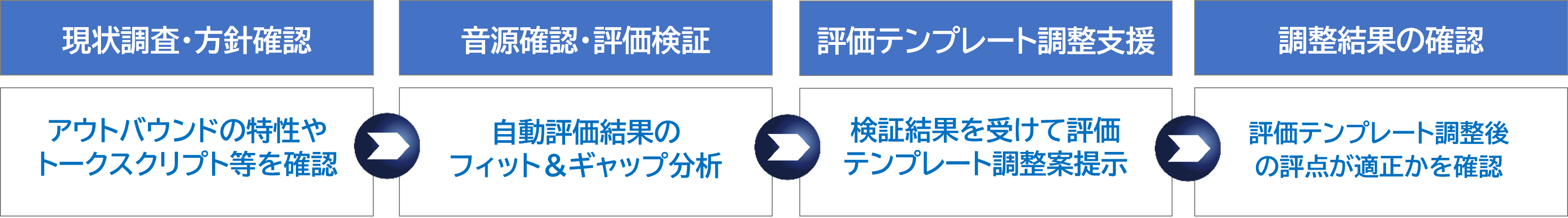 アウトバウンド業務は、窓口や業務により言い回しなどの応対が大きく異なるため、パーソルワークスデザインが提供する「導入支援コンサルサービス」を利用し、「アウトバウンド用基本評価テンプレート」をカスタマイズすることで、導入企業様に最適な評価テンプレートを作成します。
