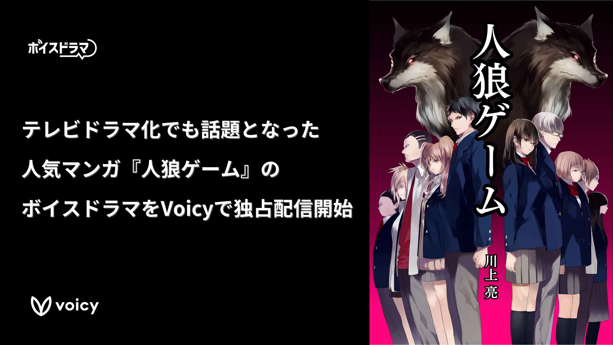 株式会社Voicyが運営する音声プラットフォームVoicyは、8月21日(水)より、ミステリーシリーズ『人狼ゲーム』のボイスドラマを配信開始します。