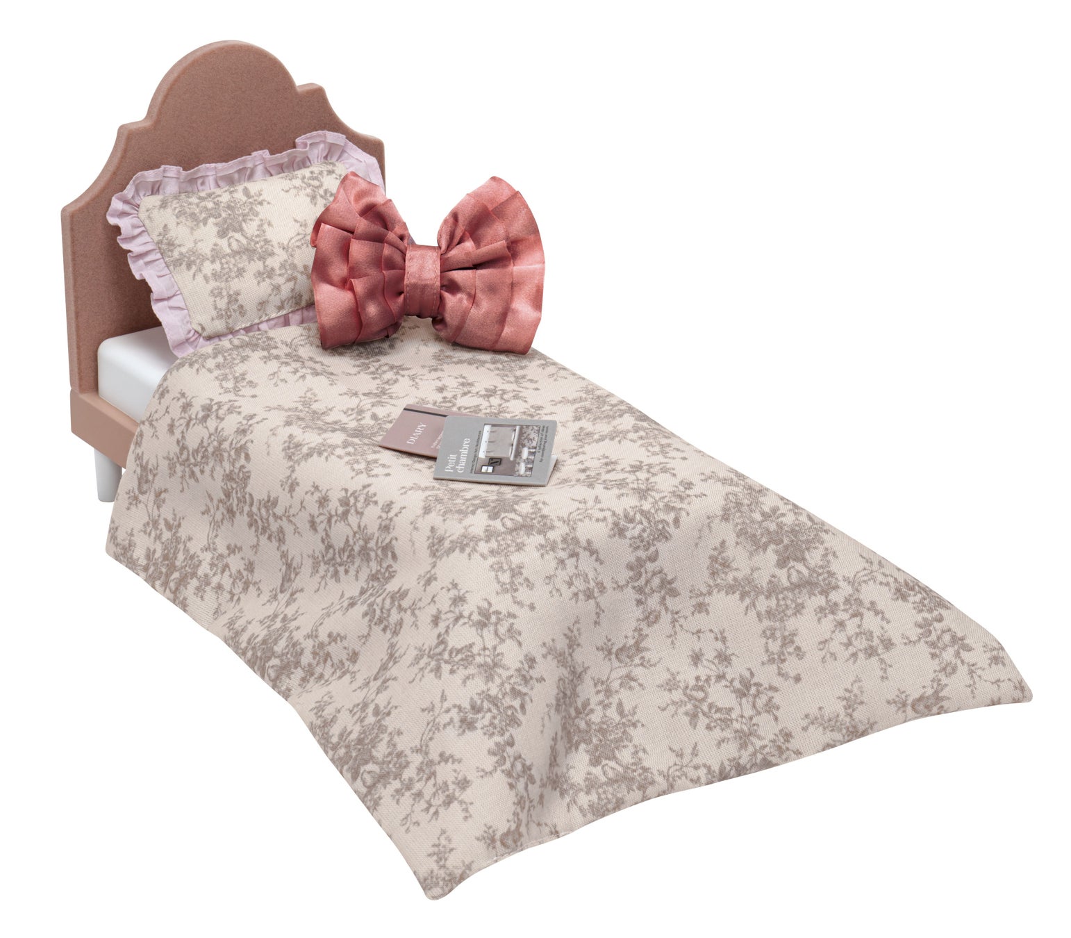 まくらと布団はリバーシブル仕様なほか、ボリューミーでゴージャスなリボン型クッションが付属します。