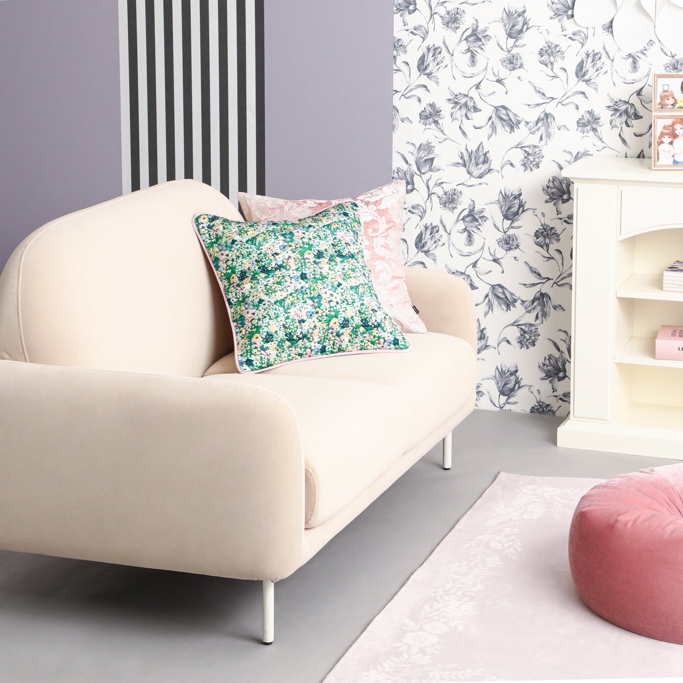 クッションや小物が付属した家具セットです。別売りのルームと組み合わせるとインテリアコーディネートの幅が広がります。