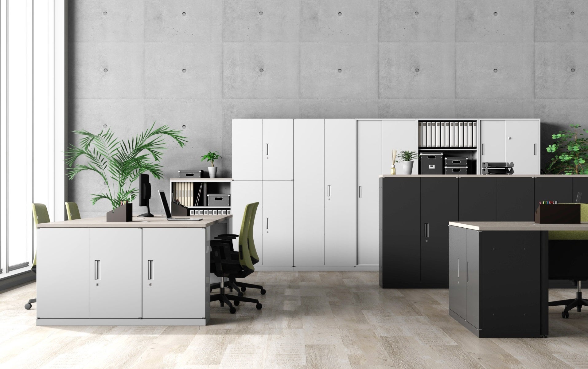 奥行きはA4書類に最適化した400mm。壁面からデスクエンドまで場所を選ばず、効率的な収納レイアウトを実現します。