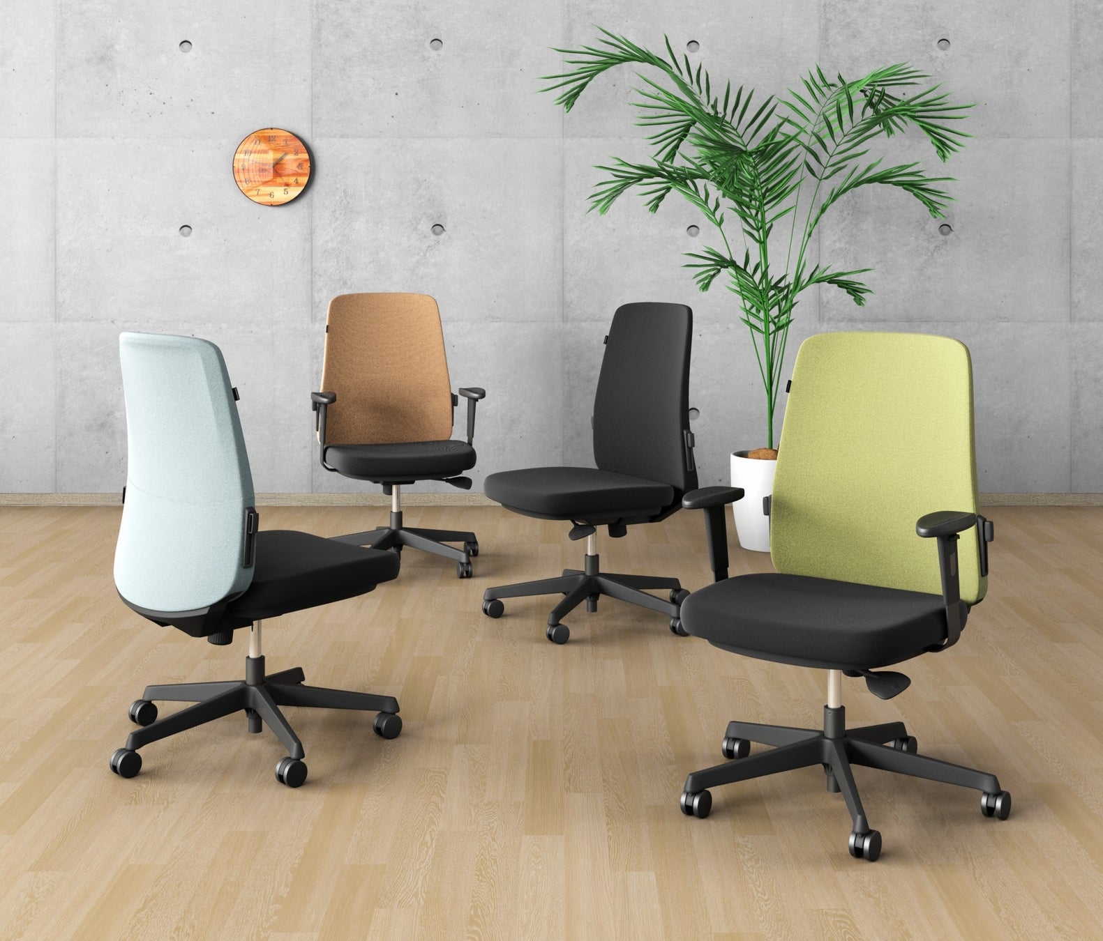 メッシュのようなクッション性とやわらかい肌触りを併せ持つ、独自の背張地素材と腰を支えるランバーサポート付きで、小柄な方から大柄な方まであらゆる体格の方に満足いただけるオフィスチェアです。