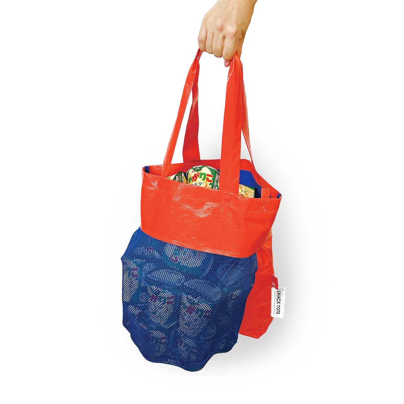大量のスナック菓子を持ち運ぶことができる驚異の収納力!飛び出し膨らむ「ルーポケット」付き