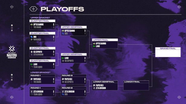 各グループの上位2チームが次のステージへ進出し、ダブルイリミネーションブラケットでトップシードの4チームと対戦します。