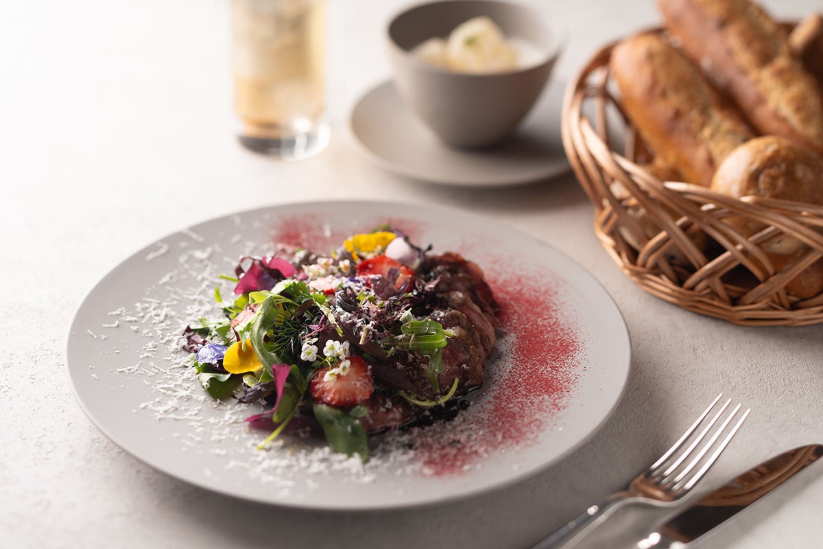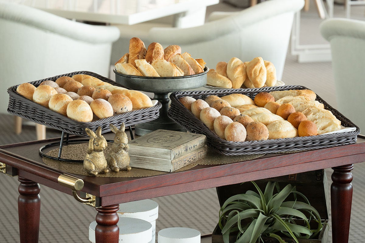 ランチメニューでは、同ビルの工房内で作るル・パンのパンを食べ放題でお召し上がりいただけます。ワゴンでスタッフがお客様のテーブルをまわります。こころゆくまでご堪能ください。