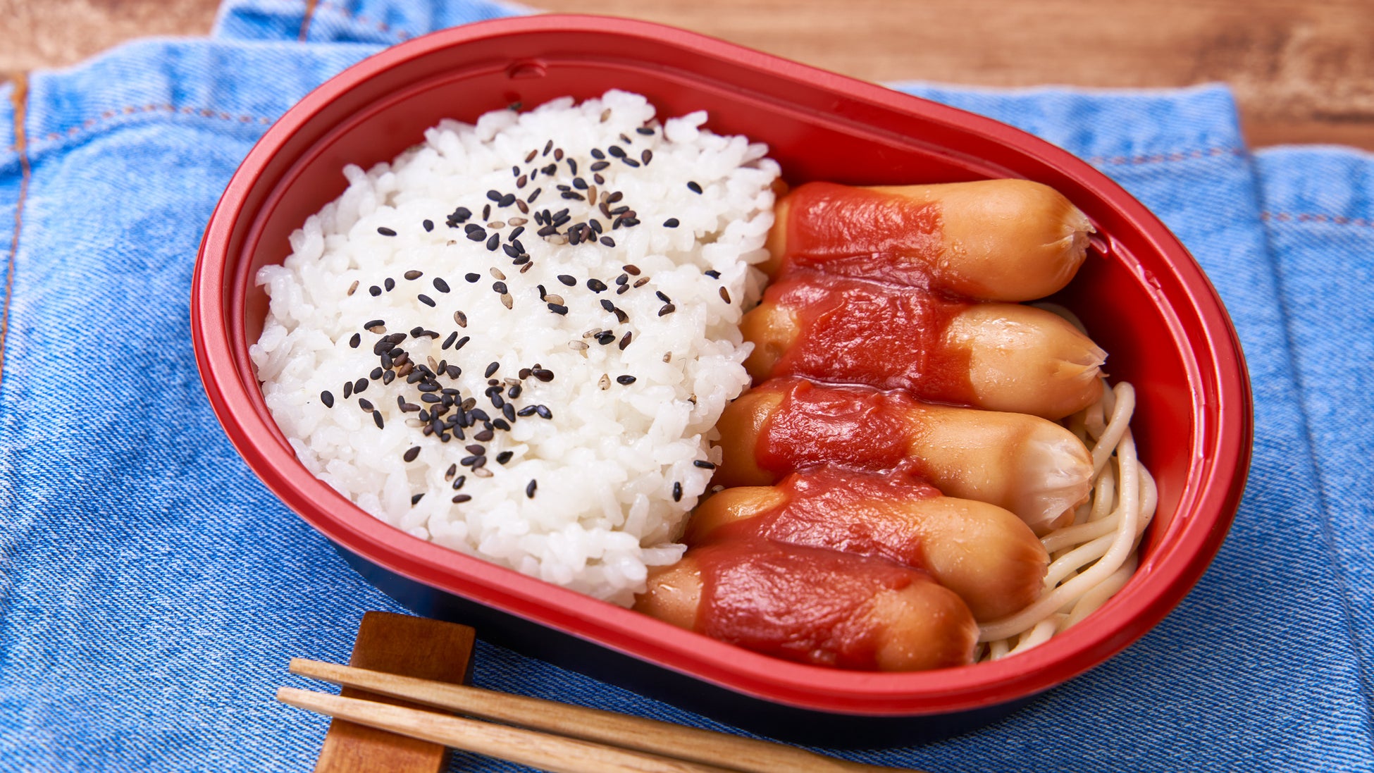 おかずはウインナー5本だけ!常識外れなアイデアにより発売までに10年の時間を要した、だけ弁当シリーズ第1弾です。