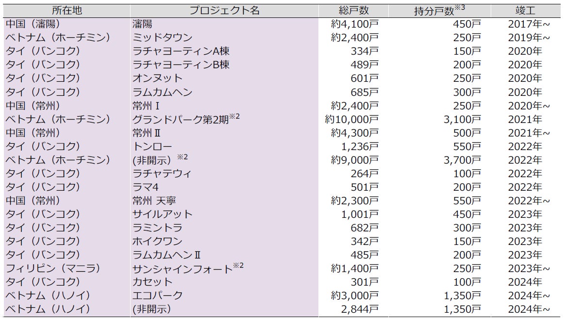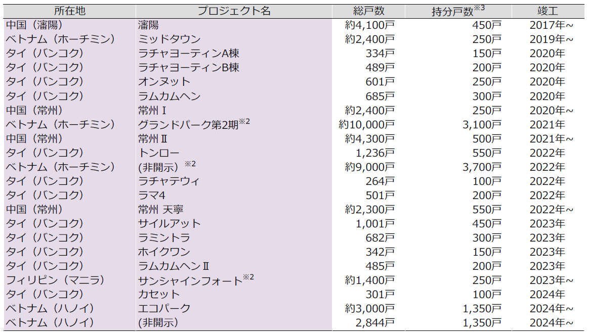 ※3 持分戸数は50戸単位で切り捨てて記載しています。また持分戸数には一部引渡済の戸数を含みます。