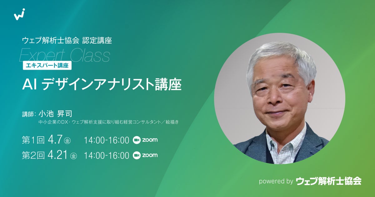 2023/4/7(金)21(金)14:00 - 16:00 【エキスパート講座006】AIデザインアナリスト講座 2日間の講座です