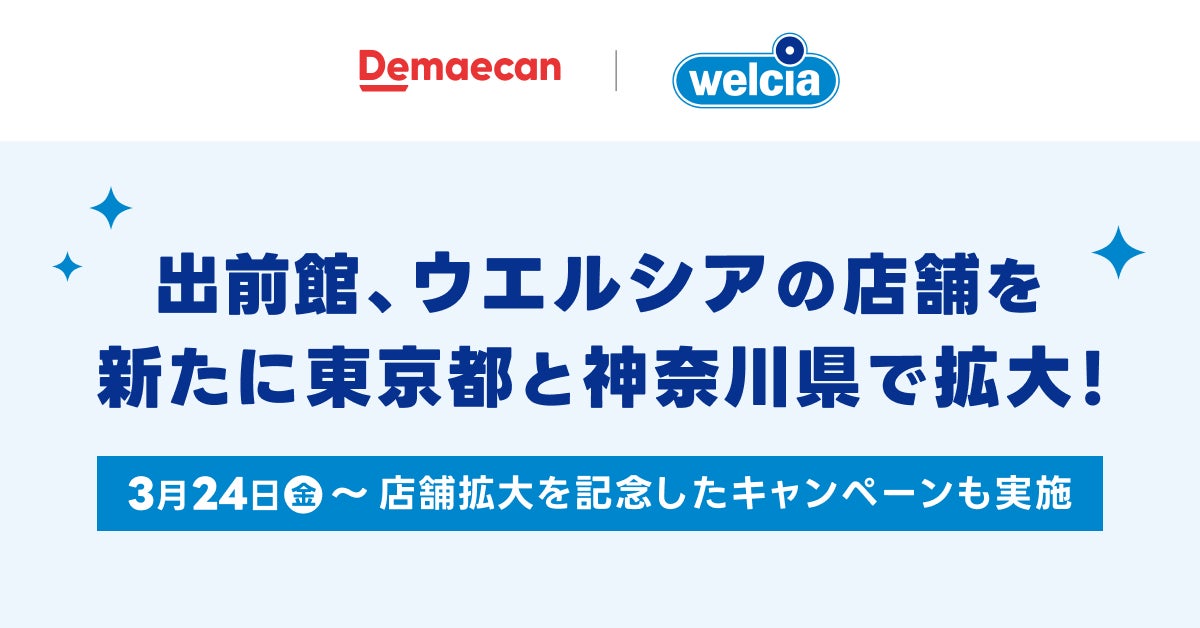 株式会社出前館(本社:東京都渋谷区、代表取締役社長:藤井英雄)が運営する日本最大級のデリバリーサービス『出前館』は、ウエルシア薬局株式会社(本社:東京都千代田区、代表取締役社長:田中純一)が運営するドラッグストアチェーン「ウエルシア薬局」(以下、「ウエルシア」)の出店が、東京都と神奈川県で拡大したことをお知らせします。また、店舗拡大を記念して、2023年3月24日(金)より、キャンペーンを実施いたします。