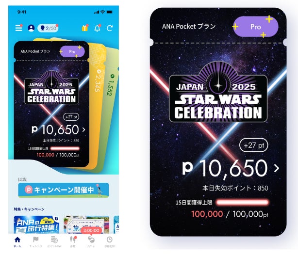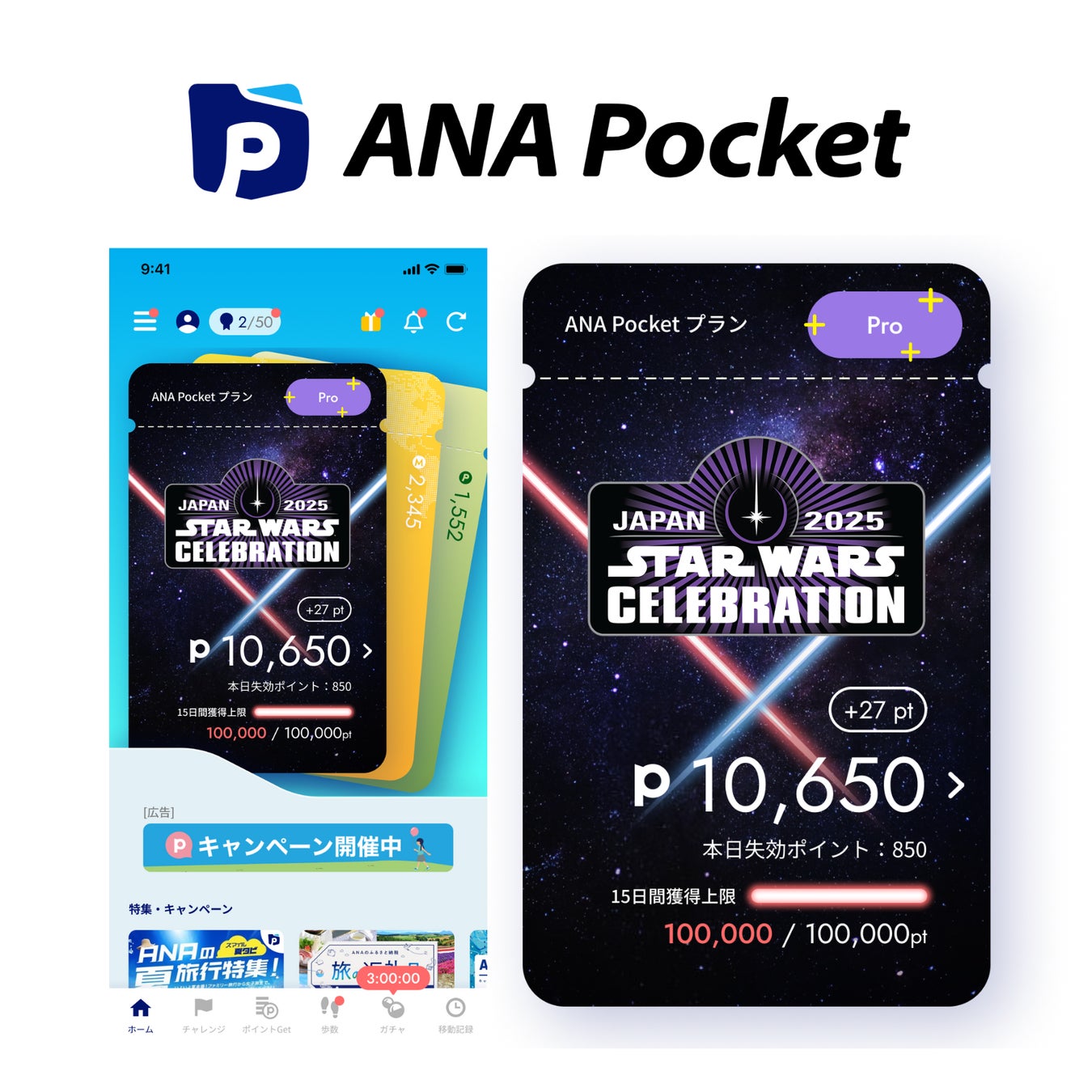 ANA X株式会社(代表取締役社長:神田 真也、本社:東京都中央区、以下「ANA X」)は、全ての移動でANAのマイルが貯まるスマートフォンアプリ「ANA Pocket」を、Star Wars Celebration Japan 2025のANAブース内で出展します。来場者限定で新規インストールキャンペーンや会場内でチェックインチャレンジを開催します。全ユーザー向けに、アプリホーム画面のポイントカードデザインが特別デザイン仕様に変化するほか、開催を記念し、期間限定でチェックインチャレンジを行います。