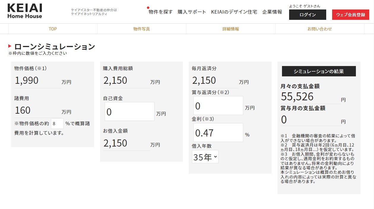 自己資金や賞与返済分など必要項目を入力すると月々の返済額が自動計算され、住宅購入をより検討しやすくしました。