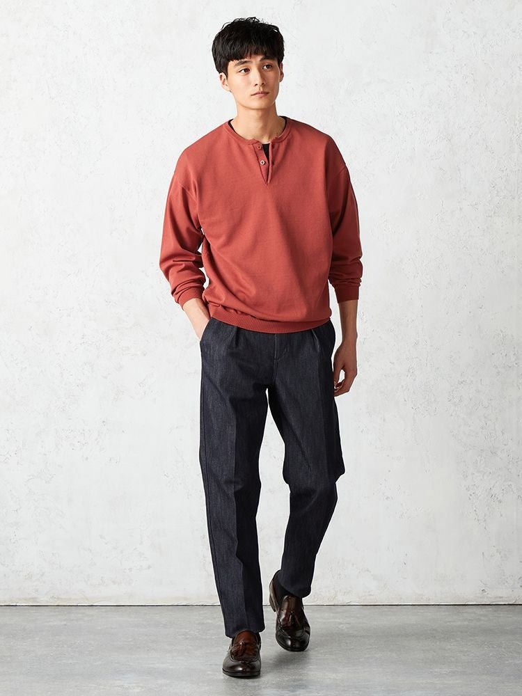 ■ニュアンスカラーで仕上げたスタイリングに取り入れやすいヘンリーネックニットが新登場!