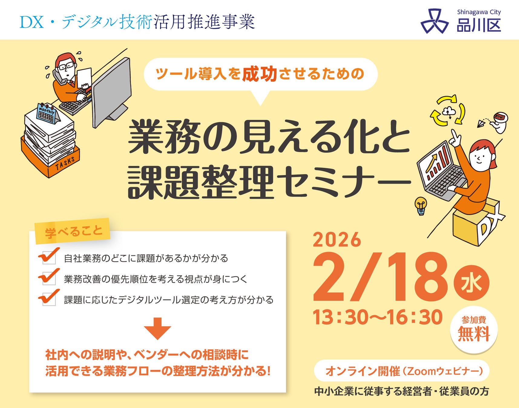 【品川区主催ウェビナー】ツール導入を成功させるための業務の見える化と課題整理セミナー【DX・デジタル技術活用推進事業】