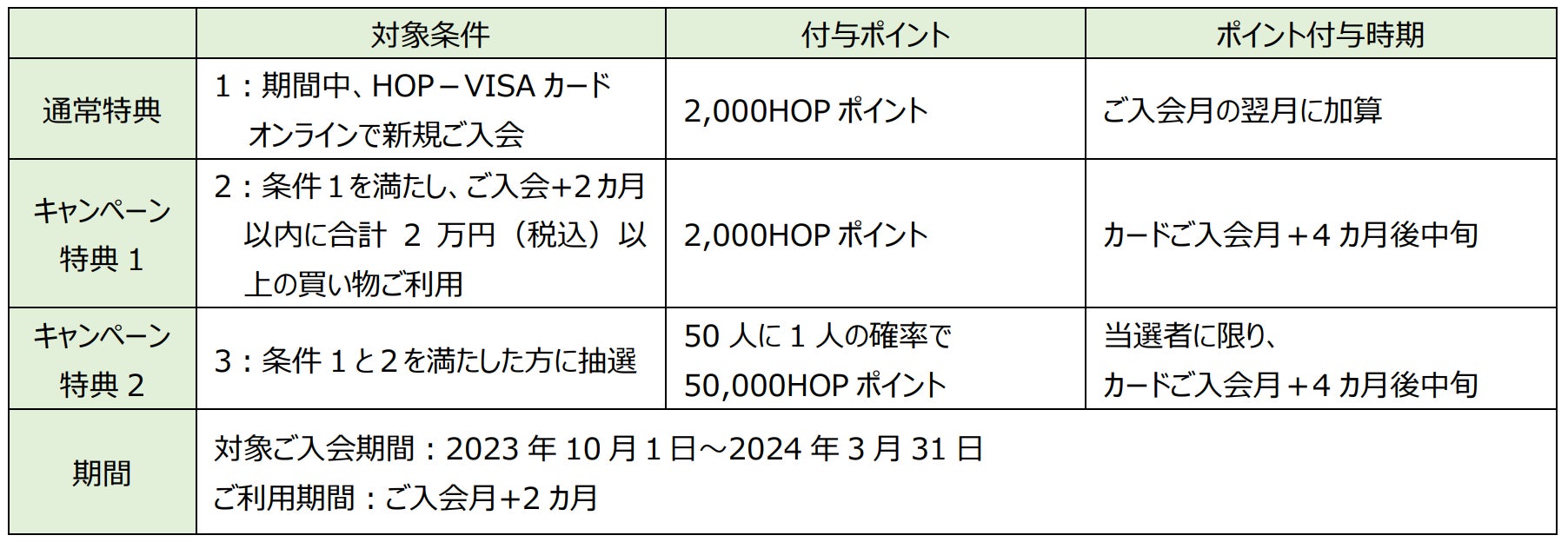 HOP-VISAカードのリニューアルを記念し、「新規ご入会&ご利用で、最大54,000HOPポイントプレゼントキャンペーン」を実施いたします。