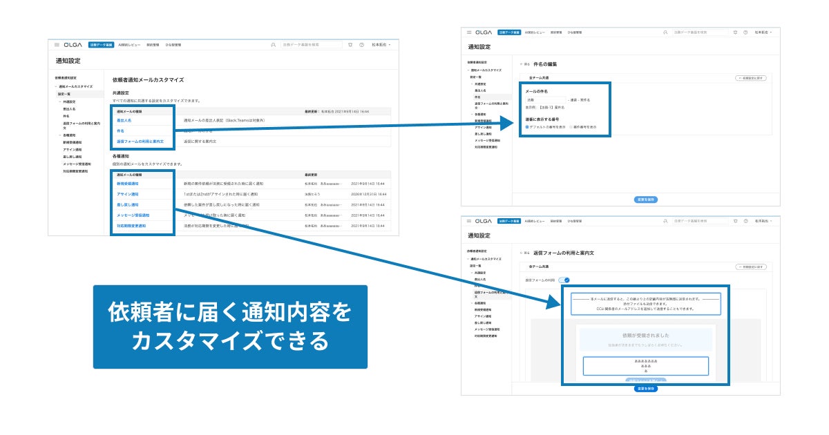 法務オートメーション「OLGA(オルガ)」、依頼者通知カスタマイズ機能をリリース