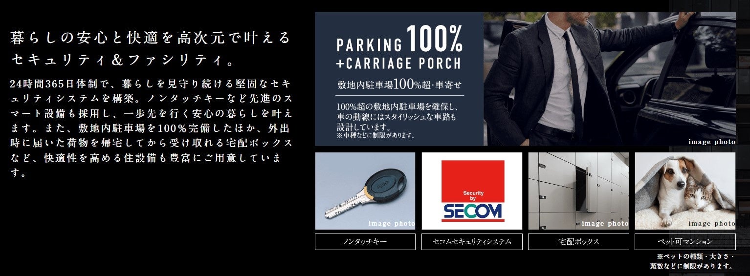駐車場 : 87台(機械式58台、平置29台〔内、軽5台、車椅子使用者優先1台、縦列駐車場2区画4台〕)