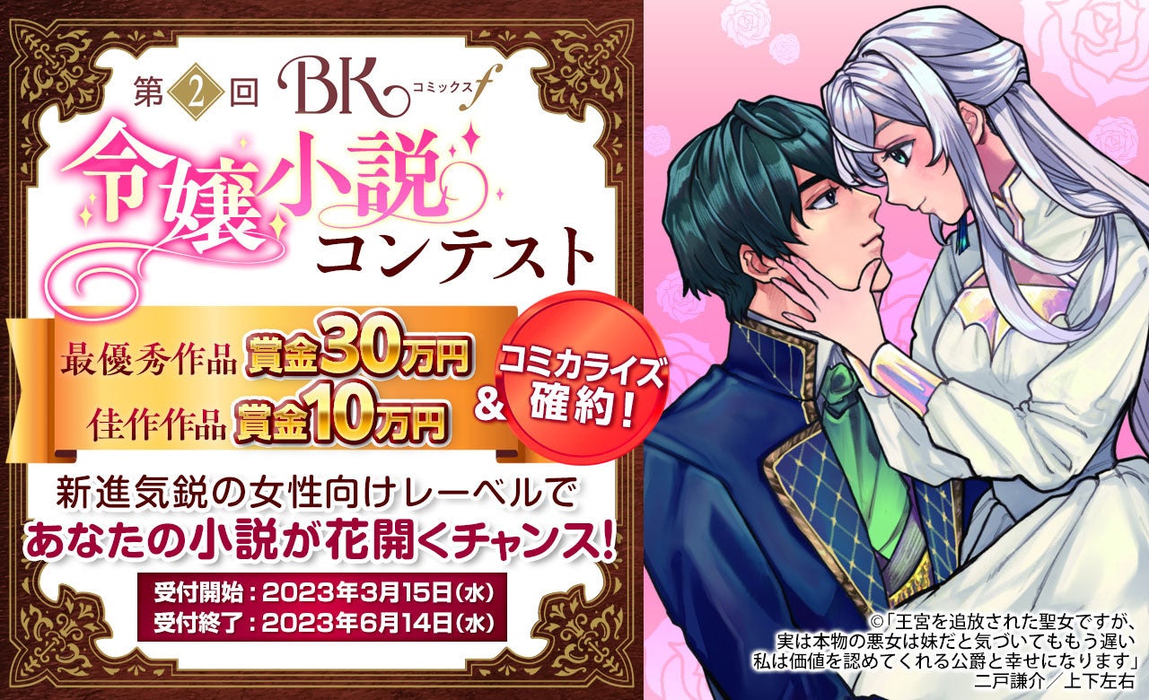 このたび、今年75周年を迎えたグループ会社のぶんか社と共同で「第2回BKコミックスf令嬢小説コンテスト」を開催いたしました。「BKコミックスf」は、創刊5年目に突入したライトノベル&コミカライズレーベル「BK ブックス」「BK コミックス」から派生し、女性の心をきらめかせる異世界&令嬢作品に特化した、ぶんか社のコミックレーベルです。