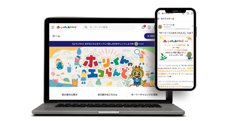 「ホーリーくんのエコらんど」は、「サッカークラブ×環境活動」をテーマに、サステナブルな取り組みを仲間と一緒に実践していくコミュニティです。ファン同士が繋がり、日常でのエコアクションへのきっかけとなる場として開設されました。