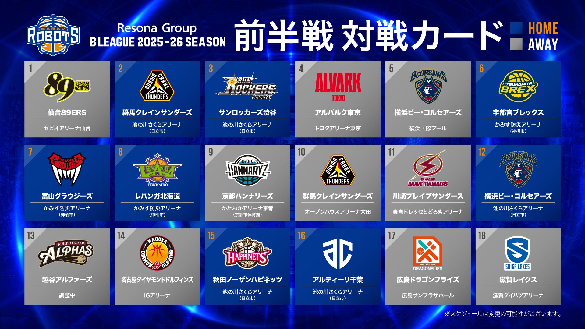 りそなグループ B.LEAGUE 2025-26シーズンの開幕節及び前半戦対戦カードが決定いたしましたのでご報告いたします。