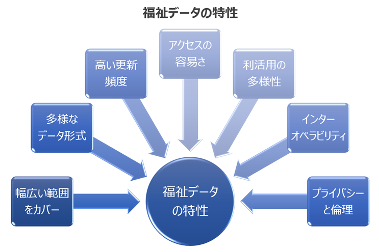 福祉分野におけるオープンデータは、社会的課題の解決に向けた重要な鍵を握っています。このデータを通じて、政策立案者、研究者、市民が現状を正確に把握し、必要な支援やサービスを的確に提供することが可能になります。オープンデータの特徴を理解することは、そのポテンシャルを最大限に活用し、全ての人々が公平で包摂的な福祉サービスを受けられるようにするための第一歩です。福祉分野のオープンデータには、以下のような特性があります。