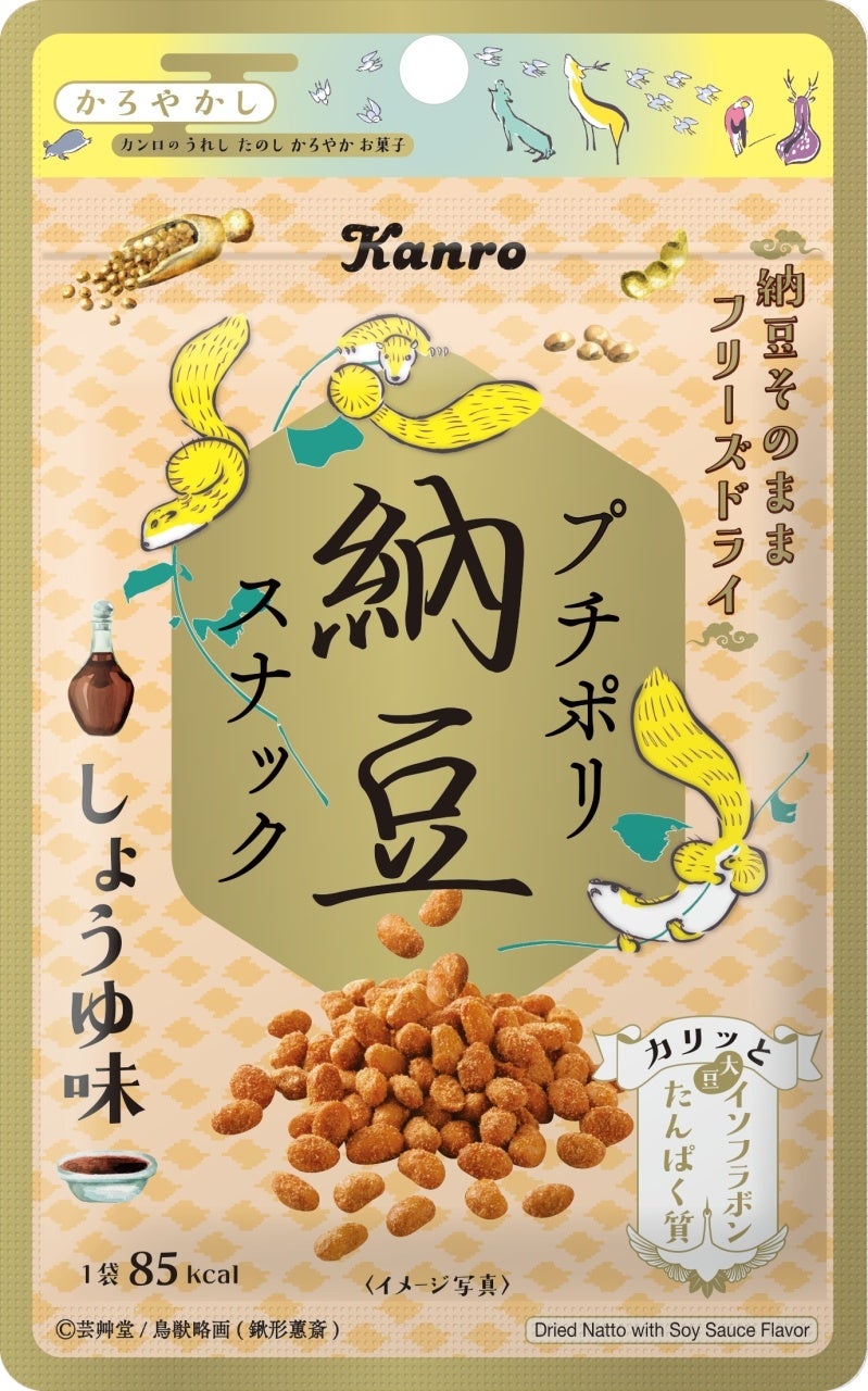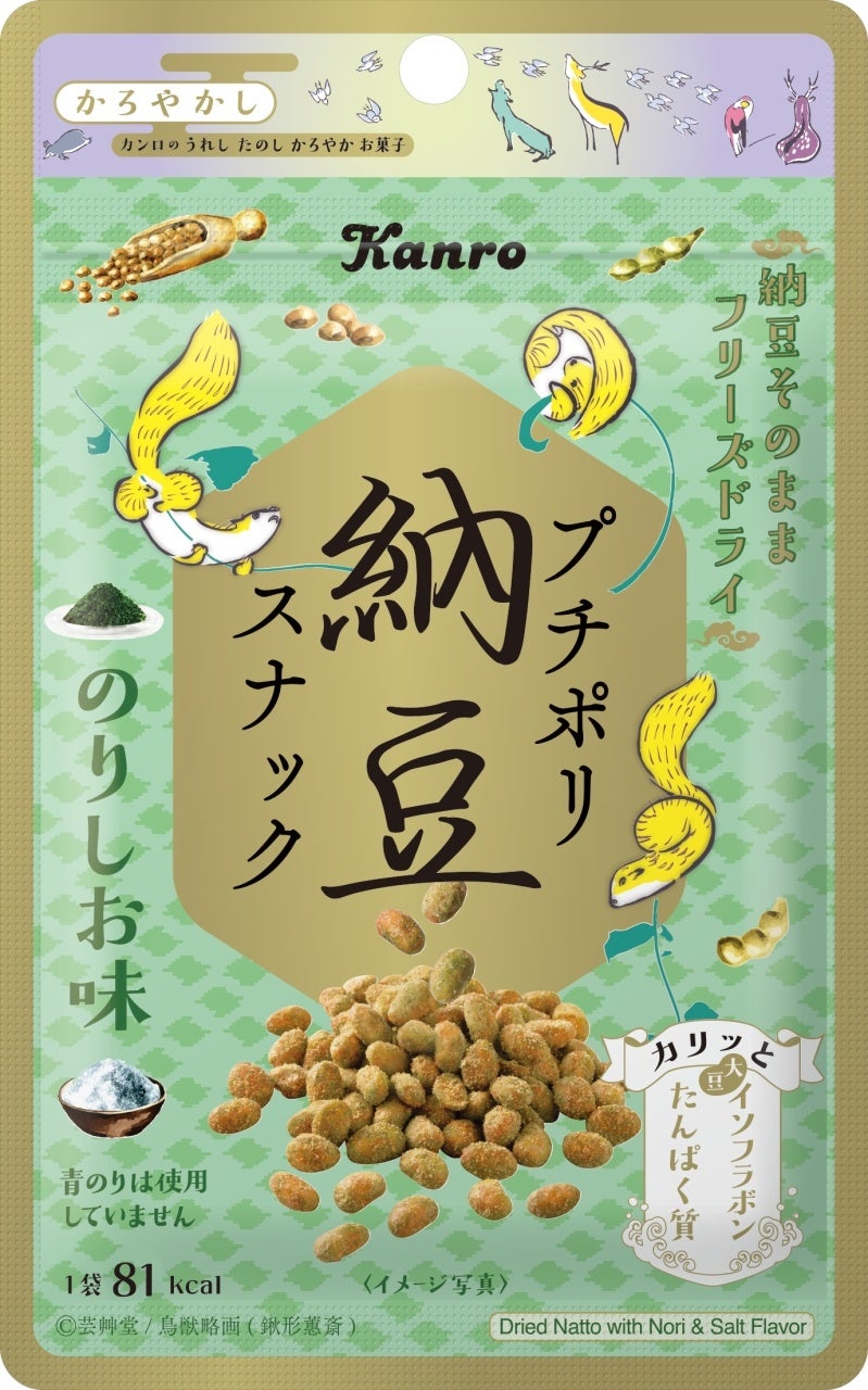 カンロ飴やピュレグミなどでおなじみのカンロ株式会社(本社:東京都新宿区、代表取締役社長 村田 哲也、以下 カンロ)は、「まるごとおいしい干し梅」「プチポリ納豆スナックしょうゆ味」「しゃきっと茎わかめ梅味」をリニューアルし、「プチポリ納豆スナックのりしお味」を新たにラインナップに加えて、素材菓子「かろやかし」シリーズとして2023年3月6日(月)より順次、全国で発売します。また、パッケージイメージの鳥獣略画をモチーフとした「かろやかし」シリーズのブランドサイトをオープンします。(https://kanro.jp/pages/karoyakashi/)