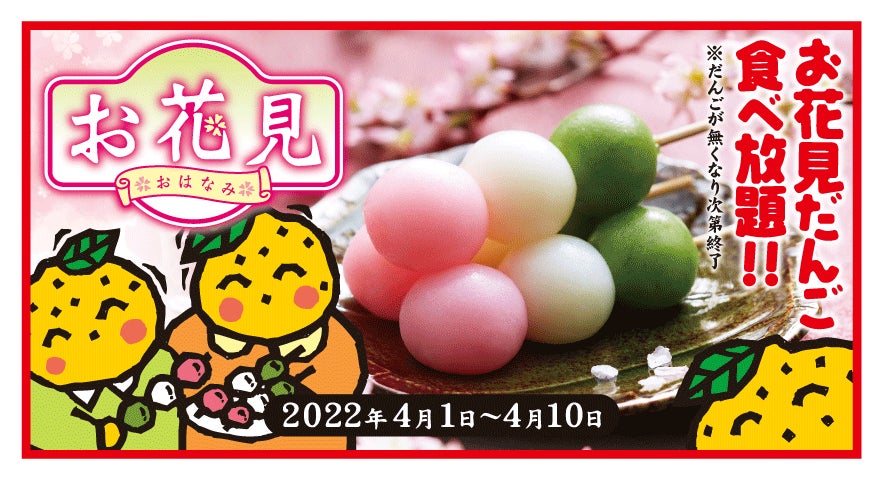 株式会社物語コーポレーション(本社:愛知県豊橋市/代表取締役社長:加藤 央之)は、全国93店舗展開する『寿司・しゃぶしゃぶ ゆず庵』(以下、ゆず庵)にて、2022年4月1日(金)~4月10日(日)まで、"お花見だんご"が食べ放題となる「ステキな日本をゆず庵で〜お花見〜」キャンペーンを開催いたします。
