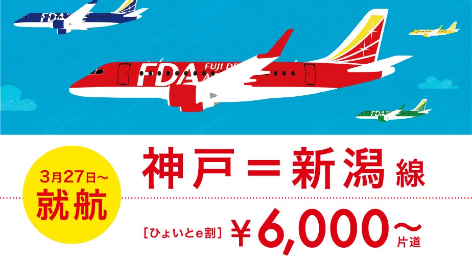 株式会社フジドリームエアラインズ(略称:FDA、本社:静岡県静岡市、代表取締役社長:楠瀬 俊一)は、夏ダイヤの運航開始日である2022年3月27日(日)に『神戸=新潟』線を路線開設することを決定し、運航ダイヤおよび運賃を国土交通省に届出いたしました。